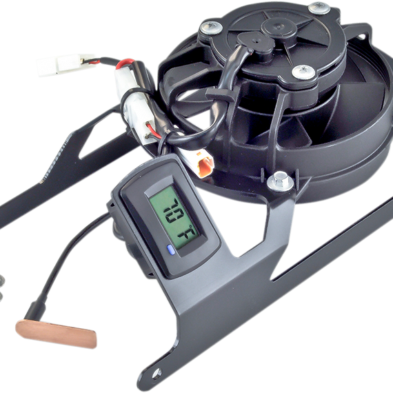 Caracteristicas: Electronic temperature sensor automatically activates the fan, keeping your engine in its optimum temperature range Programmable set-point fan switch Improved reliability over mechanical switching solutions Installs without cutting of fluid lines Kit includes 4" SPAL fan, TTV temperature meter, radiator bracket, temperature sensor, and wire harness
