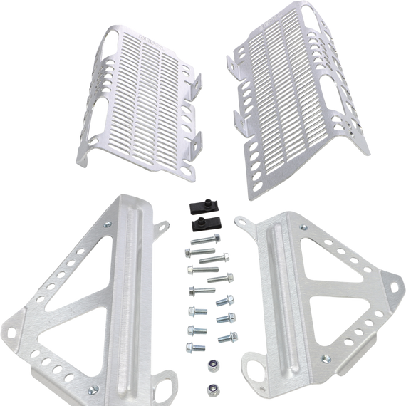 Caracteristicas: Direct frame mounting and cage design provides complete radiator protection while allowing direct airflow reducing the chances of radiator overheating High-grade U.S. aluminum alloy Lightweight, tough and effective Strategic front hole design Brushed aluminum finish 100% Made in the U.S.A