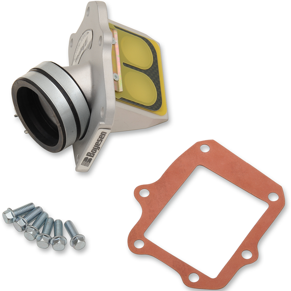 Caracteristicas: Maintain flow velocity through the valve and redirect intake charge for more even distribution to intake ports Provide quicker, sharper throttle response and more horsepower throughout rpm range Specially-designed reed cage holds Boyesen's patented dual-stage reeds Boyesen's hot RAD valves ratchet up your torque One-piece cast aluminum bolts in easily Order one set per cylinder