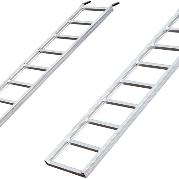 Caracteristicas: Lightweight aluminum, fully-welded construction Extruded rectangular side rails resist bending Taller, rectangular cross sections support more weight Rubber-coated tabs to protect tailgates from scratches Joints and hinges are welded, not riveted Do not ride motorcycle/ATV/UTV on ramp at any time
