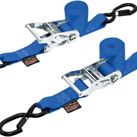 Caracteristicas: 1-1/2" ratchet tie-downs with vinyl-coated secure hook ends 6,000-lb. test nylon webbing; 1,000-lb. working load Double security stitching Made in the U.S.A.