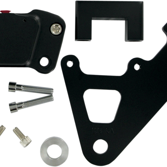 Caracteristicas: Raw metal on black contrast calipers is anodized for a long-lasting high-quality finish Two piston designs for various H-D models (including rigid frames) Hanger brackets and brake pads included For use with 11.5" rotors Made in the U.S.A. The OLD-STYLE Wagner and Kelsey-Hayes (die-cast aluminum OEM) on rear applications have a 3/4" bore master cylinder and WILL NOT WORK CORRECTLY. Not recommended for use with imported stainless steel rotors. Requires use of 5/8" bore master cylinder.