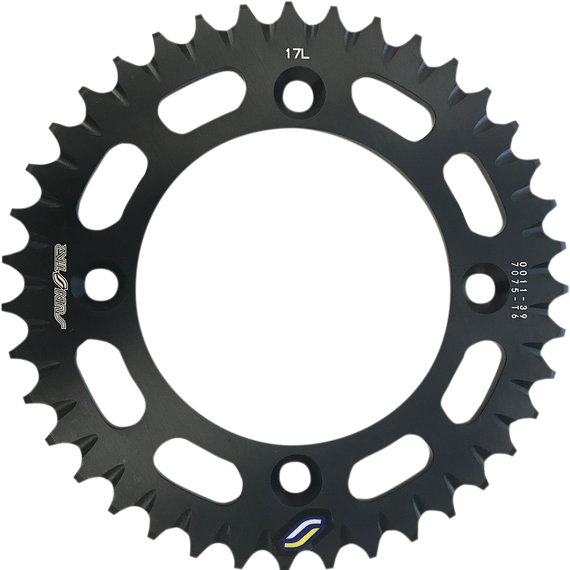 Caracteristicas: Sunstar is the largest OEM and aftermarket supplier of motorcycle and ARV sprockets in the manufacturing world for very major Japanese motorcycle builder since 1946 Constructed of high-quality, aerospace grade 7075 T-6 aluminum Computer-designed weight reduction holes for the best combination of lightness, strength, and stability Exclusive tooth-valley design provides 50% better chain contact area for the best power transfer possible Hard anodized coating for added durability and a superb finish Cleaning grooves added at the bottom of tooth area