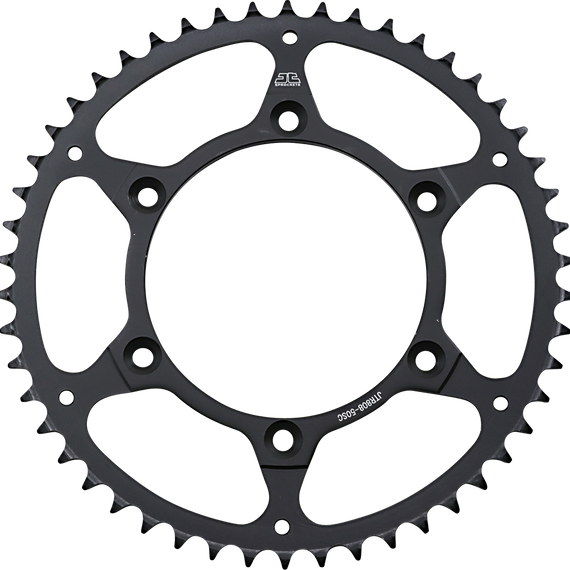 Caracteristicas: Computer designed to achieve ultimate strength at minimum weight JT combines leading-edge technology with top materials to produce the ultimate quality sprocket range with unbeatable value Every sprocket meets or exceeds the highest possible quality standards Sprockets are heat-treated and beadblasted to reduce material surface tension Front sprockets are made with top-quality Japanese C45 high carbon steel and SCM415 chromoly steel alloy Steel rear sprockets are made with top-quality Japanese C45 high carbon steel Aluminum rear sprockets are made with high strength Austrian 7075 T-6 anodized aluminum JT aluminum sprockets are about 30% lighter than a comparable steel equivalent, which reduces un-sprung rotating weight and improves performance