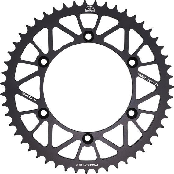 Caracteristicas: Computer-designed to achieve ultimate strength at minimum weight JT combines leading-edge technology with top materials to produce the ultimate quality sprocket range with unbeatable value Every sprocket meets or exceeds the highest possible quality standards set for the motorcycle industry Sprockets are heat-treated and bead-blasted to reduce material surface tension