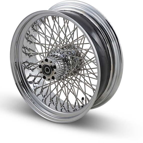 Caracteristicas: Chrome billet aluminum hubs with polished stainless steel spokes and polished stainless steel nipples Wheels come completely assembled and are trued to less than .005" runout Made in the U.S.A. by RideWright Wheels Classic, tube-type spoke design Chrome-plated steel rims DOT approved