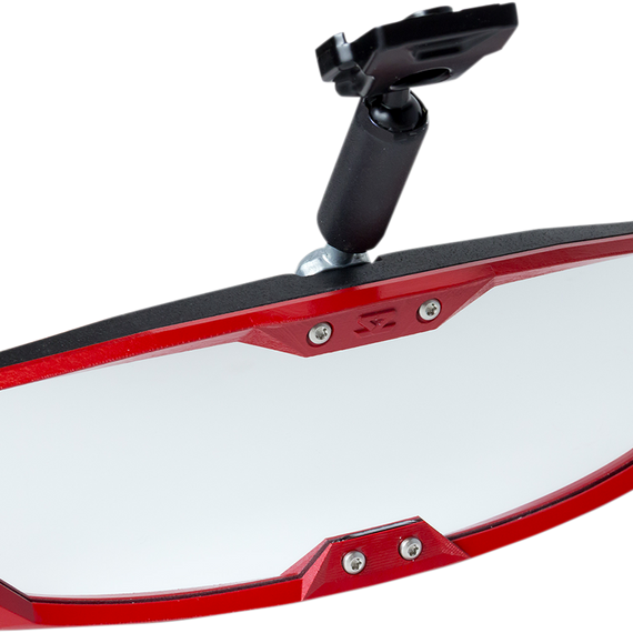 Caracteristicas: Automotive-style rearview mirror with two ball joints High Impact ABS plastic housing resists damage Shatter-resistant safety glass Convex mirror surface for wider viewing range and image stabilization Impact resistant ABS bezel protects and secures mirror glass and allows for easy glass replacement Heavy-duty steel clamp with low mass design for maximum strength and durability Styled to complement all Seizmik side view mirrors
