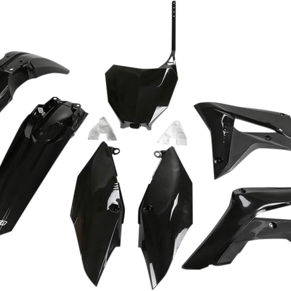 Caracteristicas: Pre-drilled pieces mount easily to stock locations Body kit includes front and rear fender, radiator covers, side panels and front number plate; OEM matches stock bike color Easy bolt-on installation Made in Italy