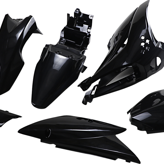 Caracteristicas: Pre-drilled pieces mount easily to stock locations Body kit includes front and rear fender, radiator covers, side panels and front number plate; OEM matches stock bike color Easy bolt-on installation Made in Italy