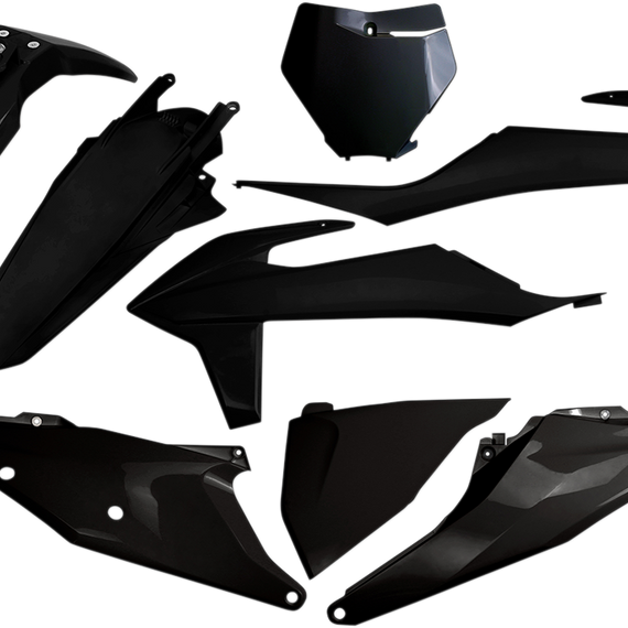 Caracteristicas: Pre-drilled pieces mount easily to stock locations Body kit includes front and rear fender, radiator covers, side panels and front number plate; OEM matches stock bike color Easy bolt-on installation Made in Italy