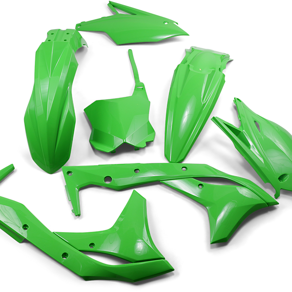 Caracteristicas: Pre-drilled pieces mount easily to stock locations Body kit includes front and rear fender, radiator covers, side panels and front number plate; OEM matches stock bike color Easy bolt-on installation Made in Italy