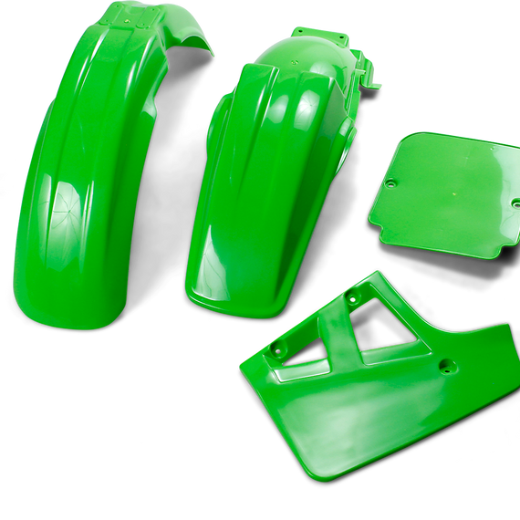 • Body kit includes front and rear fender, radiator covers, side panels and front number plate; OEM matches stock bike color