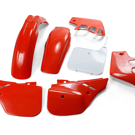 Caracteristicas: Pre-drilled pieces mount easily to stock locations Body kit includes front and rear fender, radiator covers, side panels and front number plate; OEM matches stock bike color Easy bolt-on installation Made in Italy