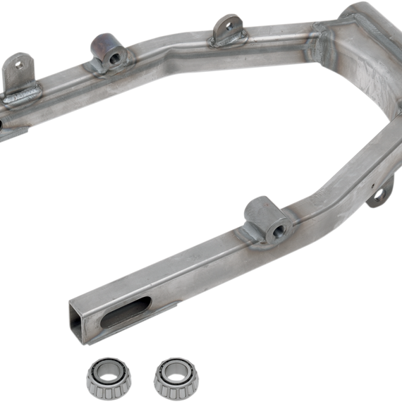 • Replacement style swingarm replaces the stock unit and has shock anchors, chain guard tab and brake anchor that are welded in place; available raw and ready to paint