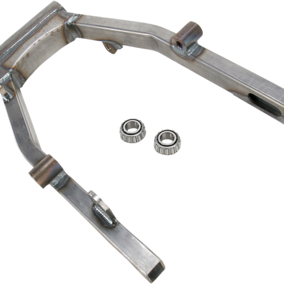 • Replacement style swingarm replaces the stock unit and has shock anchors, chain guard tab and brake anchor that are welded in place; available raw and ready to paint