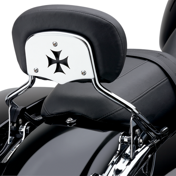 Caracteristicas: Add flair to a Cobra backrest Engraved with the Cobra logo Polished, then finished with show chrome Fit Cobra round or square sissy bars Made in the U.S.A.