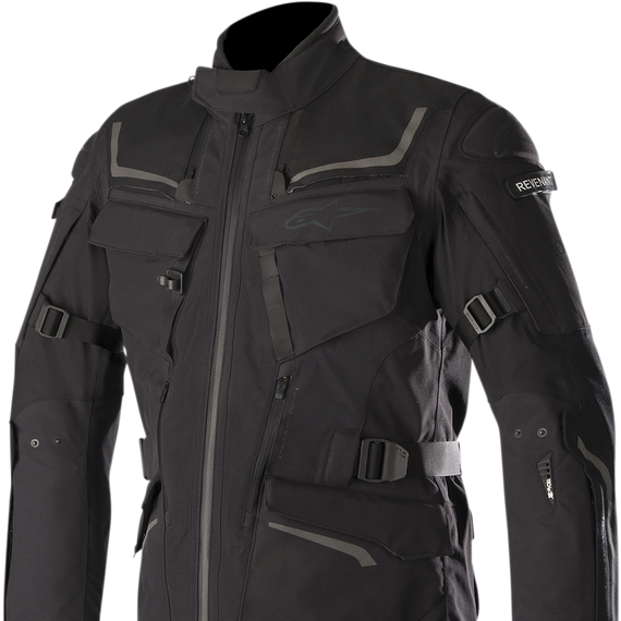 Caracteristicas: Advanced ventilation system comprised of multi-air intakes on front and exhaust ports on rear for the highest level of cooling airflow of any Alpinestars touring jacket. Strategically positioned stretch paneling provides optimized all-round fit. Hook and loop grip closure wrist, waist and sleeve adjusters allow for highly personalized fit and helps ensure garment and its protection stay close to the body in the event of a slide. Sleeve adjustment system allows for reduced material bunching for comfort and safety. Multi-storage system comprising of front and chest pockets and rear lumbar compartment for convenience. Incorporates a hydration back pocket and conduits to allow integration of camel pack as an accessory upgrade. Reflective print detailing to improve night/poor light visibility of the rider. Rear utility pocket is removable for convenience.