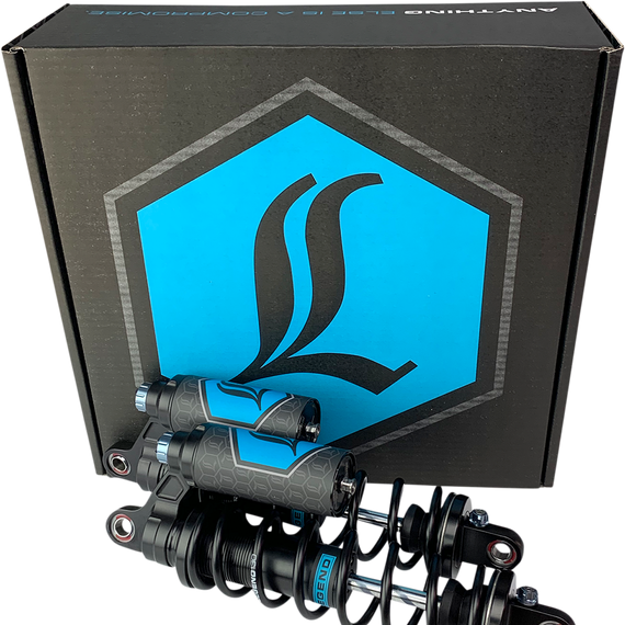 Caracteristicas: Available in Black, Gold and Clear Type III Hard-coat Anodize Legend's touring specific spring rates produce superior ride quality and performance REVO coils provide improved plush ride quality, control, and resistance to bottoming-out REVO's extended coil length has larger "sweet spot" without increasing overall shock length Allows minimal pre-load adjustments by hand when changing between riders' weights or loads Adjusts by hand, no tools needed Available in 13" and 14", standard or heavy-duty applications Easy installation and alignment, provided by spherical bearings on both top and bottom 35 mm monotube construction Deflective disc valve stacks Balanced/Matched piston and base-valve design specific for these motorcycle applications Low friction sealing system and PTFE based sliding bearings for improved performance and feel Seven external knob adjustments allow fine-tuning of rebound Seven external knob adjustments allow fine-tuning of compression Provides optimum rebound and compression performance for any given rider weight, personal ride quality preference, or personal riding style Nitrogen gas bladder design allows ultra-fast response and stiction-free movement Light to heavy riders can fine-tune ride preference Aggressive to casual riding styles can tune to desired quality or personal preference P65 WARNING:  Cancer and Reproductive Harm Lifetime Warranty Made by hand in Sturgis, SD USA FL: Heavy Duty applications are recommended for 500lb. + rider and passenger total weight. DYNA, FXR, SPORTSTER: Heavy Duty application are recommended for 250lb.+ rider and passenger total weight. Also consider Heavy Duty if the majority of your riding is 2-UP, stunt riding, or aggressive riding style.