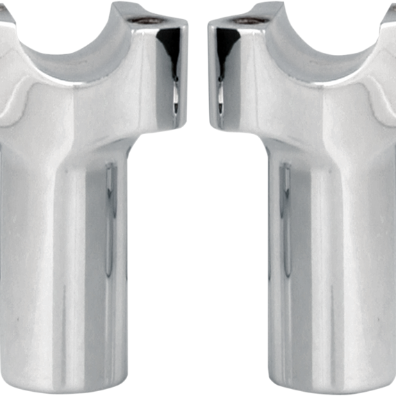 Caracteristicas: Blind hole tapped for standard 1/2" x 13 mounting bolts Fit on all models with 3-1/2" center-to-center riser spacing Work with any standard 1" handlebar, Wild 1 Chubby Bars and most other bars Use stock top clamp, after-market top clamp, or Wild 1 custom billet top clamps (with offset mounting holes) Pullback risers have 1-1/2" of pullback Made in the U.S.A.