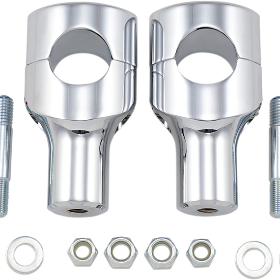 Caracteristicas: Risers are machined from billet aluminum For use with Drag Specialties 1-1/2" Big Buffalo bars or other bars with a 1-1/2" diameter clamping area Use 1/2"-13 riser bolts, available separately Made in the U.S.A.