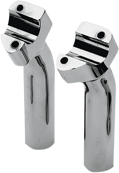 Caracteristicas: Risers are machined from billet aluminum Fit any handlebars that have a 1" diameter in the clamping area, and have 1-1/4" riser diameter to compliment the style of 1-1/4" diameter handlebars Accepts Buffalo handlebar clamps or OEM-style handlebar clamps with offset mounting holes Pullback risers have 1" of pullback All risers use 1/2"-13 riser bolts; available separately Made in the U.S.A.