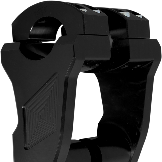 Caracteristicas: Patented pivoting handlebar risers mount on nearly any V-Twin with 1" diameter handlebars and open mounting area Risers can be positioned forward, backward or anywhere in between to allow the rider to truly customize the feel of their bike Bottom fits 1" handlebar clamps; 1" bar clamp on the top side Easy installation: remove current bar, place the stem of the risers where the bar was located previously then tighten it down; place the handlebar in the top side of the risers and tighten all bolts down securely Constructed from aircraft-grade aluminum (6061-T6) Made in the U.S.A. Always check and confirm that your machine has adequate cable and brake line length before installing handlebar risers