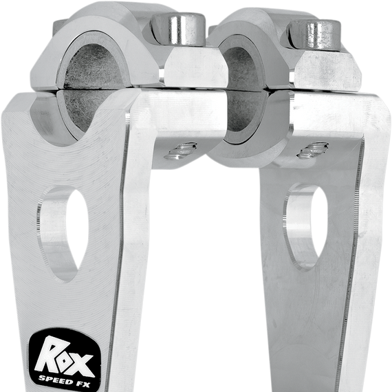 Caracteristicas: Patented design pivoting risers are incredibly universal with a two-piece design that allows them to be clamped to any machine with 7/8" handlebar clamps Allow you to clamp a stock 7/8" diameter handlebar, or you can remove the 7/8" reducers and clamp a 1-1/8" aluminum handlebar; reducers lock into risers to ensure no slippage between components, and serrated teeth provide maximum gripping power on the handlebar Risers are held by the original 7/8" clamps and reclamp the handlebars 2", 3-1/2" or 5" higher (depending on size purchased) with pivoting fore and aft adjustment Rox out-board positioning also makes them incredibly durable Made in the U.S.A.