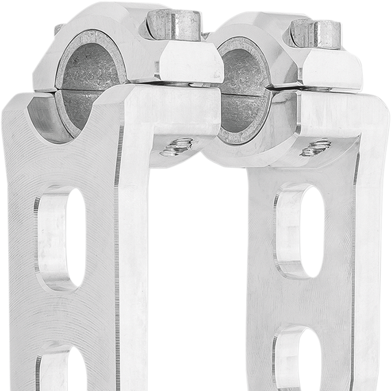 Caracteristicas: Patented design pivoting risers are incredibly universal with a two-piece design that allows them to be clamped to any machine with 7/8" handlebar clamps Allow you to clamp a stock 7/8" diameter handlebar, or you can remove the 7/8" reducers and clamp a 1-1/8" aluminum handlebar; reducers lock into risers to ensure no slippage between components, and serrated teeth provide maximum gripping power on the handlebar Risers are held by the original 7/8" clamps and reclamp the handlebars 2", 3-1/2" or 5" higher (depending on size purchased) with pivoting fore and aft adjustment Rox out-board positioning also makes them incredibly durable Made in the U.S.A.