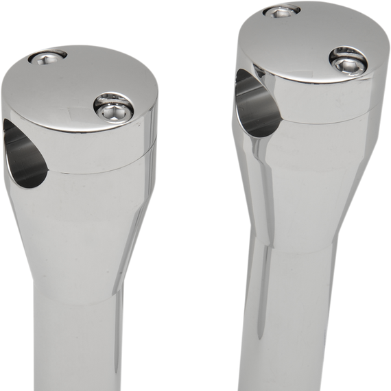 Caracteristicas: Chrome-plated risers are fully machined from forged aluminum 1" diameter clamping area accepts 1/2"-20 bolts