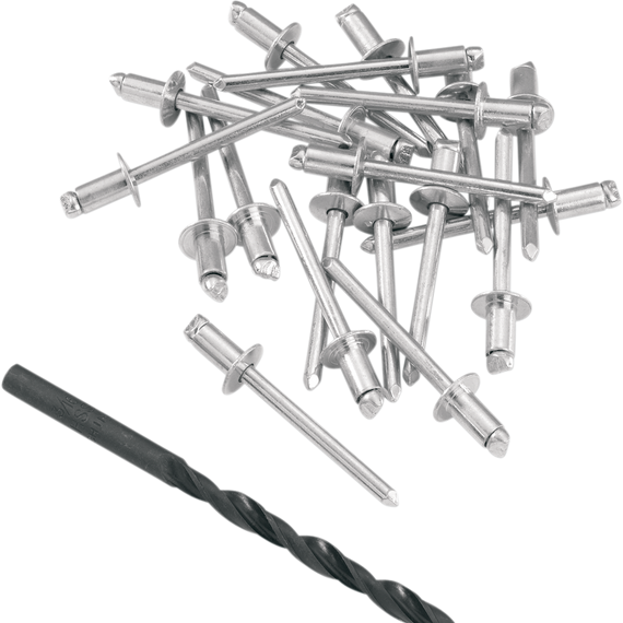 Caracteristicas: Have the right parts ready to complete the job Steel rivets with corrosion-resistant coating Rivets designed to be pulled by a hand-operated rivet gun; no air power needed Rivet diameter 3/16" with a grip range of .125" to .6" Kit includes 20 rivets and one properly sized 3/16" drill bit Made in the U.S.A.