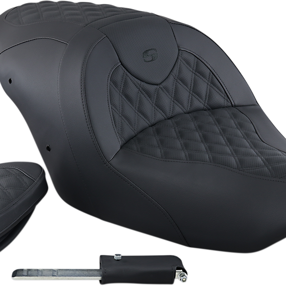 Caracteristicas: Tall lumbar support and wide driver saddle supports the back and legs for superior comfort, while the streamlined nose improves the rider's reach to the ground SaddleGel™ in front and rear reduces tailbone pressure and increases circulation and comfort for both driver and passenger Refined split-cushion design maximizes long-range comfort by separating the seating surface from the lumbar support to reduce tailbone and back pressure Ventilated soft leather upholstery provides a luxurious look and ride Made with perforated leather inserts and weatherproof, no-maintenance-required SaddleHyde™ Include with a fitted rain cover specially designed to protect your seat from water and dirt Designed and made in the U.S.A.