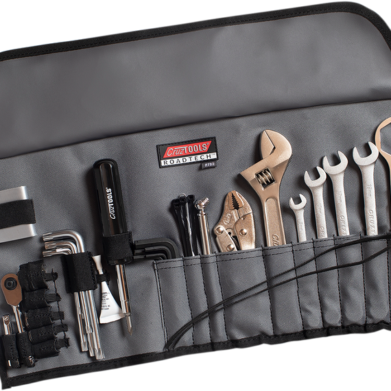 • This kit includes a mini ratchet with 2” extension and sockets (8mm, 10mm, 12mm, 13mm), 6 torx keys, 5 hex keys, 6-in-1 screwdriver, locking pliers, duct tape, thread-lock, cable ties, mechanics wire, and tire pressure gauge, combination wrenches (8mm, 10mm, 12mm, 13mm), an 8” adjustable wrench, and 34mm rear axle wrench and 10x12x19x22mm hex adapter for BMW axles & drain plugs