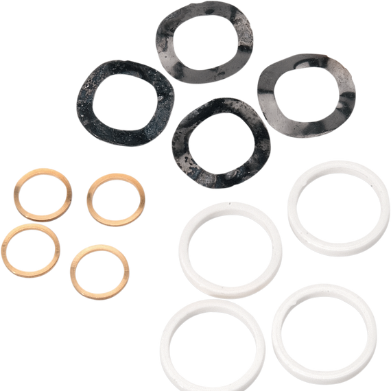 Caracteristicas: Contains shims, spacers and seals to rebuild all four rocker arm shafts found in 66-84 Shovelhead engines Rocker arm won't come out of adjustment or need re-shimming Only needs to be replaced with each valve job