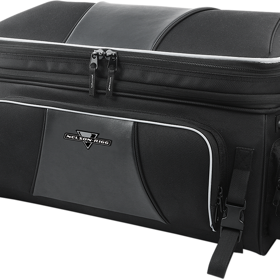 Caracteristicas: Industry leading UltraMax® fabric with maximum UV protection Mounts to most tour trunk luggage racks Can hold 2 full face helmets even when non-expanded Additional 3” expansion section for extra storage 3 generous outer pockets for quick access items Mesh pocket under lid of main compartment Reflective piping for enhanced visibility Rugged quick release straps securely mount to rack Fully lined interior with rigid construction