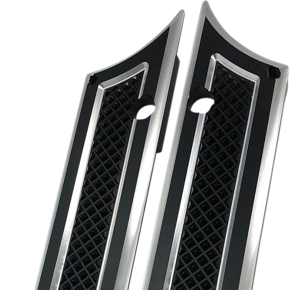 Caracteristicas: Feature a back-cut design with diamond-cut center Replace stock faceplates on Touring models with hard bags Mounting hardware included Made in the U.S.A.