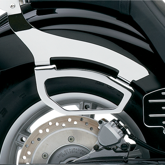 • Keep throw-over saddlebags from getting tangled in the rear wheel