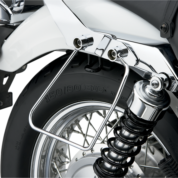 Caracteristicas: Keep throw-over saddlebags from getting tangled in the rear wheel Attach to existing mounting points for easy installation; custom-fit to each bike Made of thick steel tubing bent to fit each bike model and then polished and powder coated Safety feature for riders and saddlebags alike Made in the U.S.A.