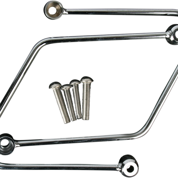 Caracteristicas: Keep throw-over saddlebags from getting tangled in the rear wheel Attach to existing mounting points for easy installation; custom-fit to each bike Made of thick steel tubing bent to fit each bike model and then polished and powder coated Safety feature for riders and saddlebags alike Made in the U.S.A.
