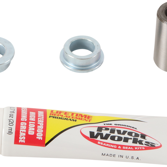 • Some shock absorbers on Kawasaki and Honda models use a clevis to connect shock to the linkage. The bearing, collar and seals that are pressed into the linkage arm are included in the Pivot Works Shock Kit.