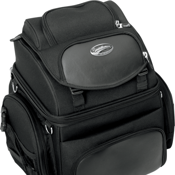 Caracteristicas: Two mounting systems included: Saddlemen's "Versa-Mount" under-seat yoke and harness, and an adjustable sissy bar strap system that easily attaches bag to your motorcycle's seat, luggage rack or sissy bar Backrest pad can be adjusted for additional comfort for the passenger or driver Include detachable backpack straps for easy off-the-bike jaunts Include another large top-loading main compartment with internal organizer pocket Five external pockets, two of which can be expanded for added capacity Five internal and two outer mesh pockets Rain cover with security tether protects the bag from the elements Top exterior flap can be adjusted to carry a jacket Mini-padlock, with extra keys, helps secure your belongings in the bag Internal structure maintains bag shape and is strong enough to lean on, even when empty BR1800 measures 11" W x 15" H x 10" D; 1,800 cubic inches cargo capacity; holds one 3/4 helmet plus other cargo No sissy bar required