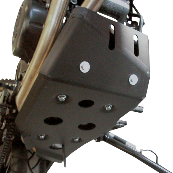 Caracteristicas: Protect vital engine parts and cases from rocks and debris Clear anodized for corrosion protection and good looks Skid plates made from 3/16" 5052 H-32 aluminum Smooth underside won't snag when crossing logs Oil drain hole on all required models Heat-treated chromoly steel clamps keep plates mounted securely All mounting hardware included Made in the U.S.A.