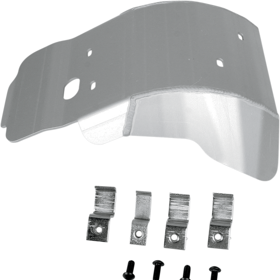 Caracteristicas: Protect vital engine parts and cases from rocks and debris Clear anodized for corrosion protection and good looks Skid plates made from 3/16" 5052 H-32 aluminum Smooth underside won't snag when crossing logs Oil drain hole on all required models Heat-treated chromoly steel clamps keep plates mounted securely All mounting hardware included Made in the U.S.A.