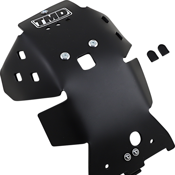 Caracteristicas: Composite impact absorbing plastic with silicone additive to reduce friction Built for rough MX, off-road and enduro riders who need maximum racing protection TMD skid plates are designed to allow maximum frame flex Precision-formed (not molded) with no welds to crack or creak Up to 45% lighter than aluminum skid plates and reduced engine bounced to the rider 35% lighter than alloy plates All hardware is 100% replaceable Covers frame rails, water pump and ignition cover Reduces noise and vibration Engineered to provide the best overall coverage