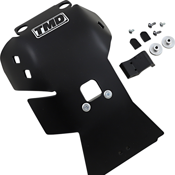 Caracteristicas: Composite impact absorbing plastic with silicone additive to reduce friction Built for rough MX, off-road and enduro riders who need maximum racing protection TMD skid plates are designed to allow maximum frame flex Precision-formed (not molded) with no welds to crack or creak Up to 45% lighter than aluminum skid plates and reduced engine bounced to the rider 35% lighter than alloy plates All hardware is 100% replaceable Covers frame rails, water pump and ignition cover Reduces noise and vibration Engineered to provide the best overall coverage