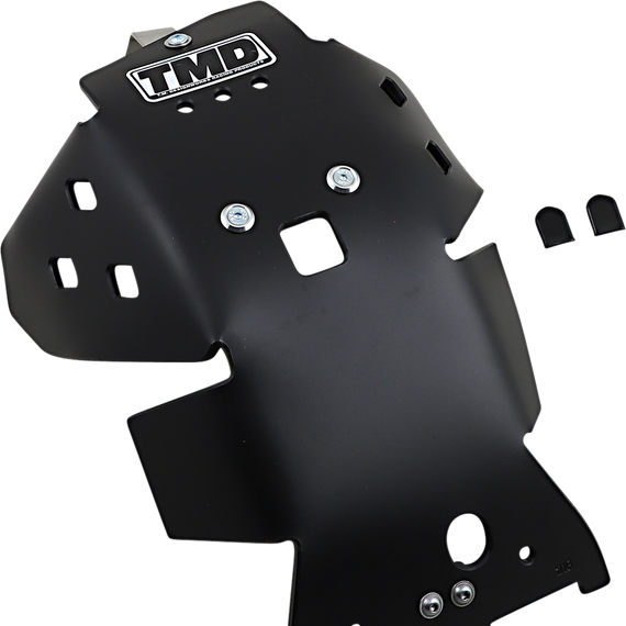 Caracteristicas: Composite impact absorbing plastic with silicone additive to reduce friction Built for rough MX, off-road and enduro riders who need maximum racing protection TMD skid plates are designed to allow maximum frame flex Precision-formed (not molded) with no welds to crack or creak Up to 45% lighter than aluminum skid plates and reduced engine bounced to the rider 35% lighter than alloy plates All hardware is 100% replaceable Covers frame rails, water pump and ignition cover Reduces noise and vibration Engineered to provide the best overall coverage