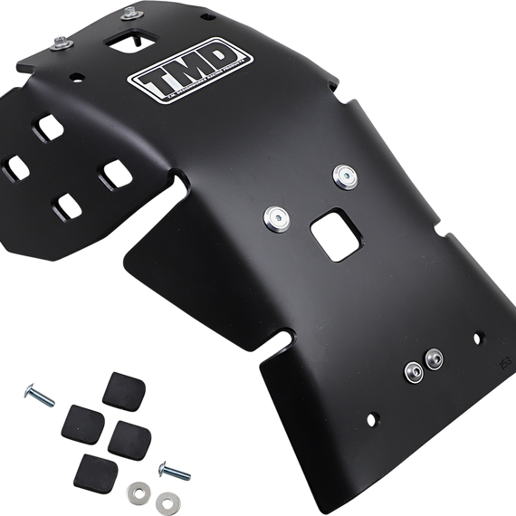 Caracteristicas: Composite impact absorbing plastic with silicone additive to reduce friction Built for rough MX, off-road and enduro riders who need maximum racing protection TMD skid plates are designed to allow maximum frame flex Precision-formed (not molded) with no welds to crack or creak Up to 45% lighter than aluminum skid plates and reduced engine bounced to the rider 35% lighter than alloy plates All hardware is 100% replaceable Covers frame rails, water pump and ignition cover Reduces noise and vibration Engineered to provide the best overall coverage