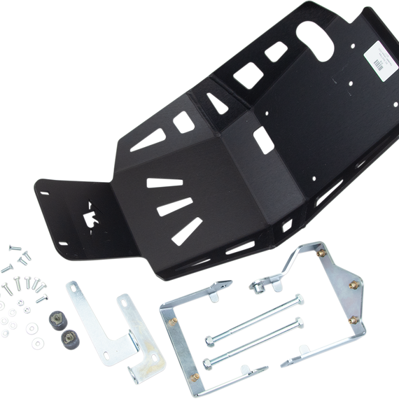 Caracteristicas: Protect vital engine parts and cases from rocks and debris Clear anodized for corrosion protection and good looks Skid plates made from 3/16" 5052 H-32 aluminum Smooth underside won't snag when crossing logs Oil drain hole on all required models Heat-treated chromoly steel clamps keep plates mounted securely All mounting hardware included Made in the U.S.A.