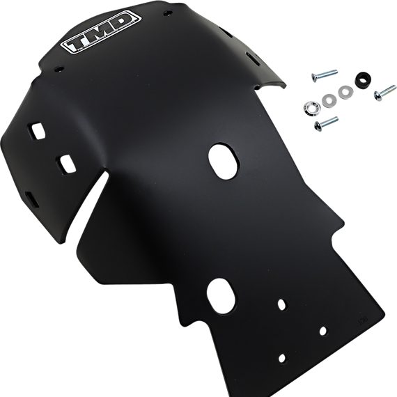 Caracteristicas: Composite impact absorbing plastic with silicone additive to reduce friction Built for rough MX, off-road and enduro riders who need maximum racing protection TMD skid plates are designed  to allow maximum frame flex Precision-formed (not molded) with no welds to crack or creak Up to 45% lighter than aluminum skid plates and reduced engine bounced to the rider 35% lighter than alloy  plates All hardware is 100% replaceable Covers frame rails, water pump and ignition cover Reduces noise and vibration Engineered to provide the best overall coverage