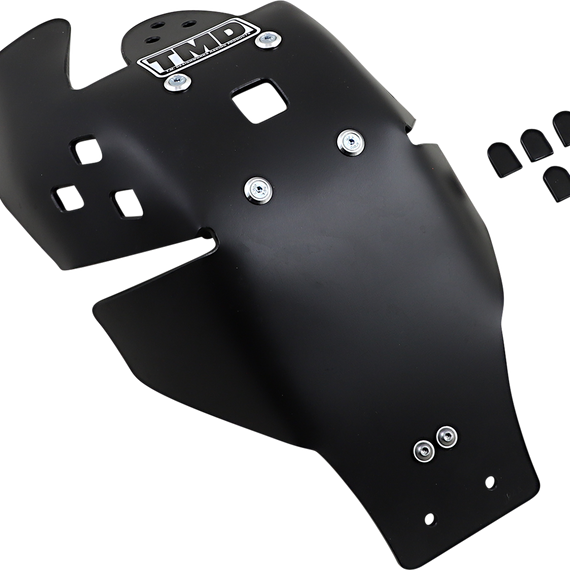 Caracteristicas: Composite impact absorbing plastic with silicone additive to reduce friction Built for rough MX, off-road and enduro riders who need maximum racing protection TMD skid plates are designed  to allow maximum frame flex Precision-formed (not molded) with no welds to crack or creak Up to 45% lighter than aluminum skid plates and reduced engine bounced to the rider 35% lighter than alloy  plates All hardware is 100% replaceable Covers frame rails, water pump and ignition cover Reduces noise and vibration Engineered to provide the best overall coverage