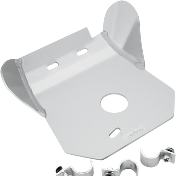 Caracteristicas: Protect vital engine parts and cases from rocks and debris Clear anodized for corrosion protection and good looks Skid plates made from 3/16" 5052 H-32 aluminum Smooth underside won't snag when crossing logs Oil drain hole on all required models Heat-treated chromoly steel clamps keep plates mounted securely All mounting hardware included Made in the U.S.A.